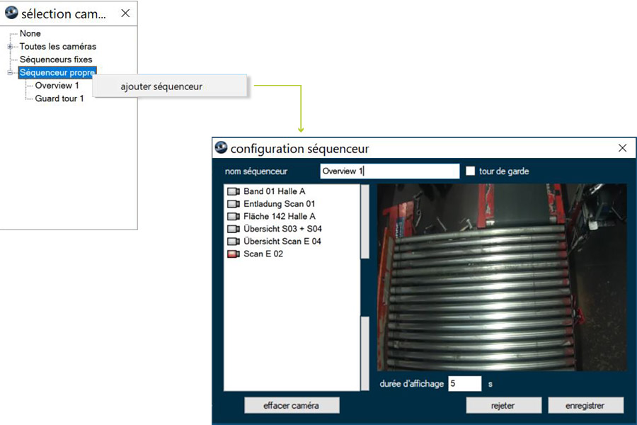 Les séquenceurs et les tours de garde peuvent être commutés comme des caméras.