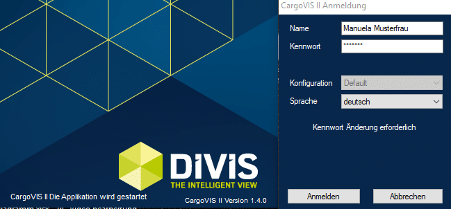 Sollte er direkt nach dem ersten Start der CargoVIS oder ParcelVIS zur Änderung seines Kennwortes aufgefordert werden, so ist dies vom Administrator (wie im Beispiel oben beschrieben) vorab so eingestellt worden.